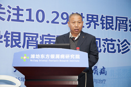 潍坊市慈善总会办公室主任杨宏伟先生在会上做了重要讲话:杨主任表示:银屑病患者是一个特殊的群体,因为银屑病的不规范诊疗,造成因病致贫、因病返贫的现象时有发生。潍坊东方银屑病研究院建院25来,始终热心于社会公益事业,得到了患者和社会各界的一致认可。为此,慈善总会与潍坊东方银屑病研究院携手启动200万银康慈善基金用于银屑病患者的专项援助,希望能帮助银屑病患者早日恢复!